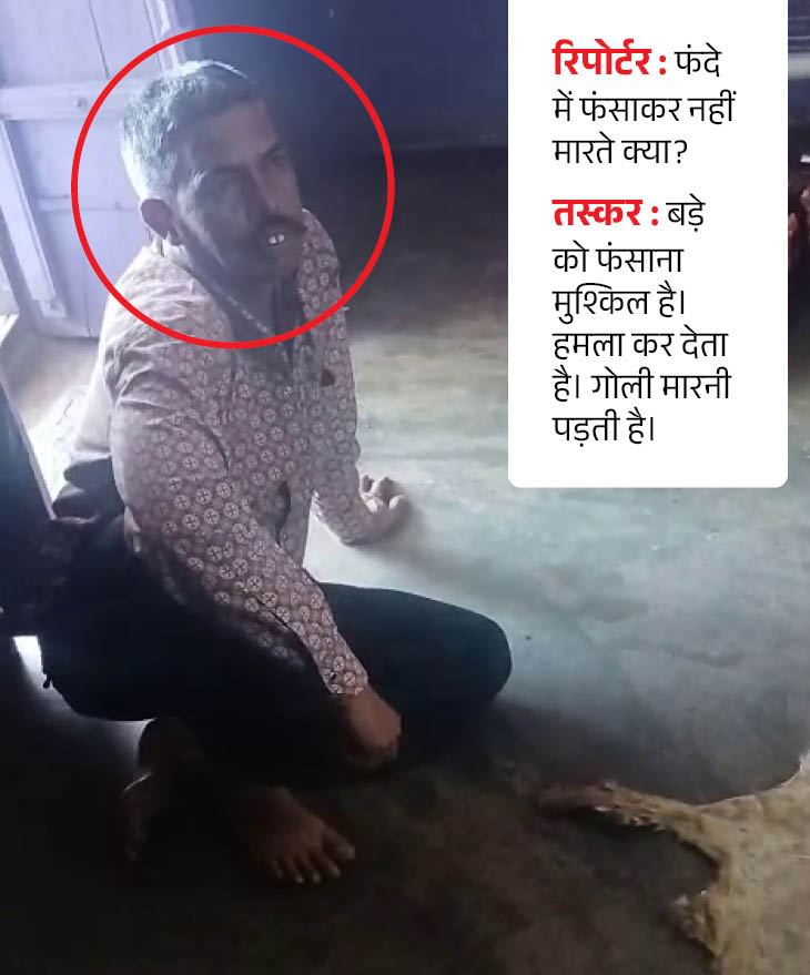 सेठ बने रिपोर्टर ने तस्करों से कहा- खाल पर कट लगा हुआ है। यह काम नहीं आएगी। तब तस्कर ने जवाब में कहा- कट नहीं गोली का निशान है।